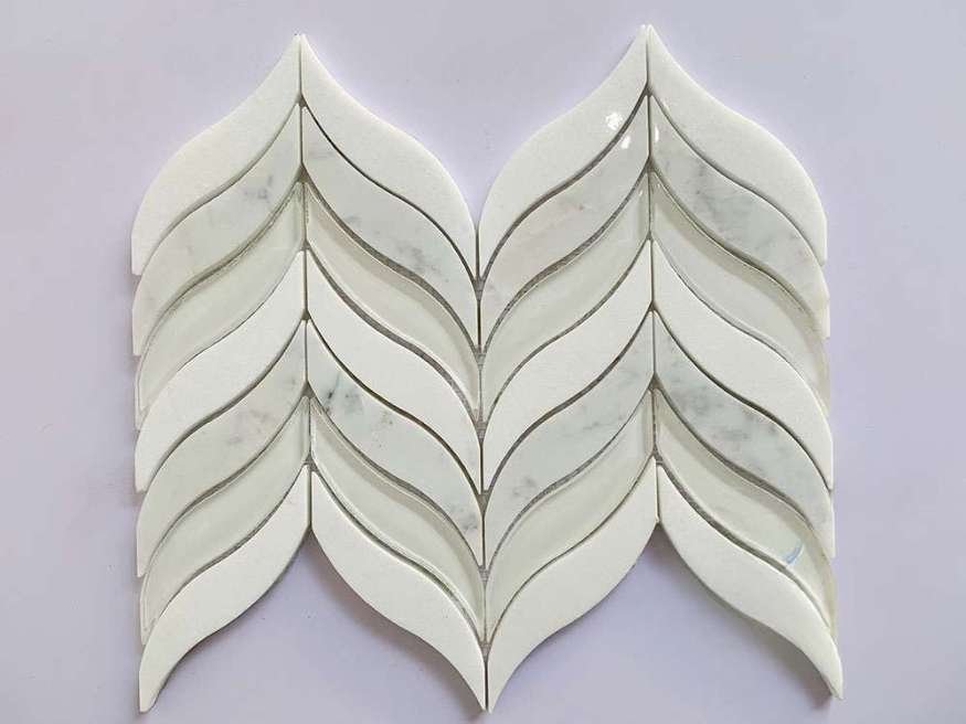 Flower Leaf Herringbone Marble Mosaic Tiles β 300x300mm