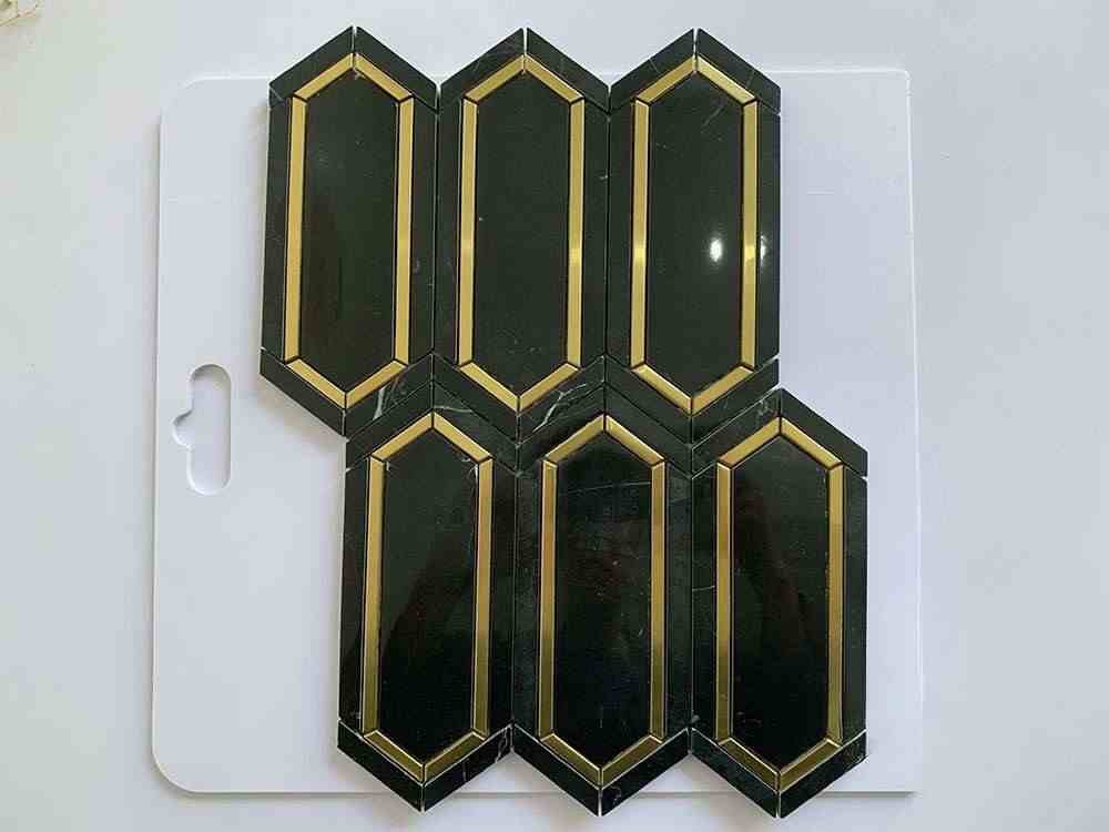 | π§± Product Name | Golden Border Dark Green Metal Mix Marble Mosaic Tiles |