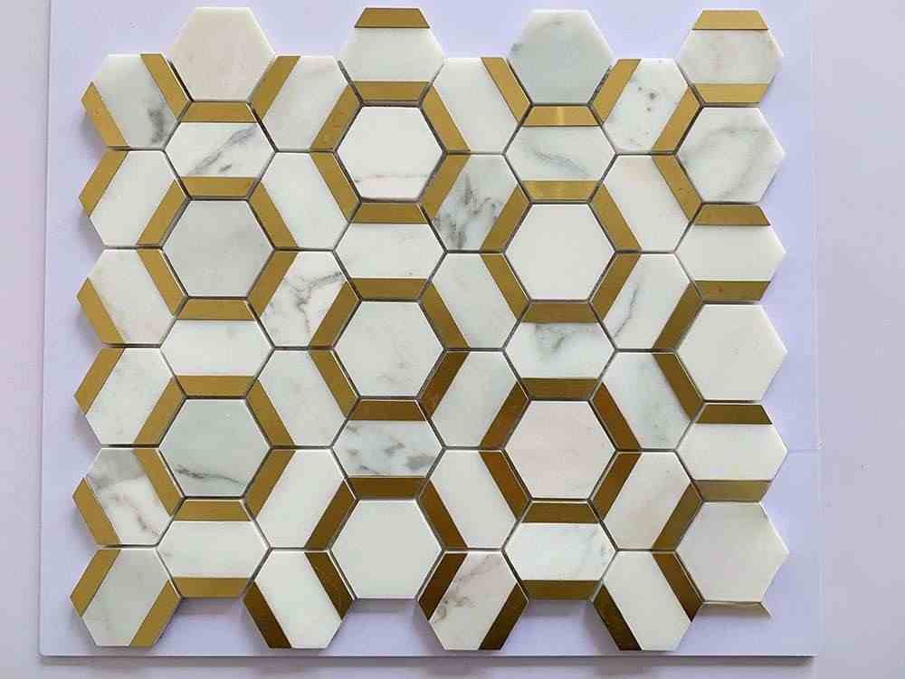 | π§± Product Name | Golden Hexagonal Metal Mix Marble Mosaic Tiles |