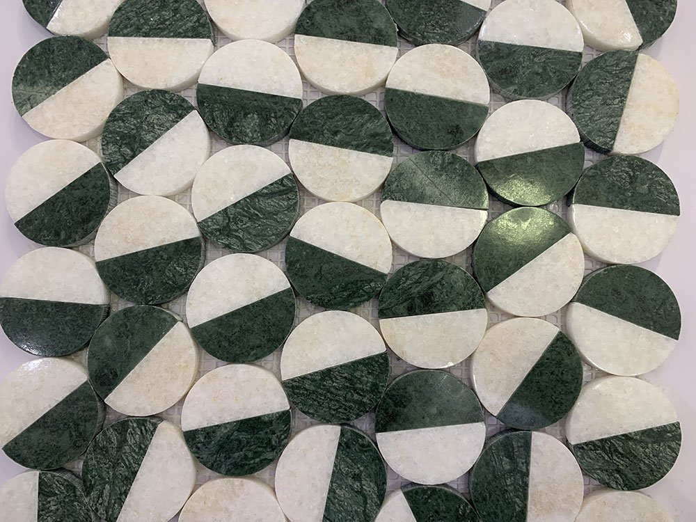 🧱 Product Name Green and White Circle Marble Mosaic Tiles