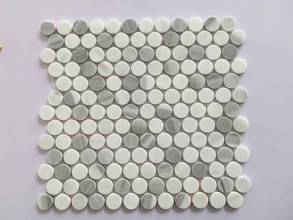 🧱 Product Name Grey and White Circle Marble Mosaic Tiles