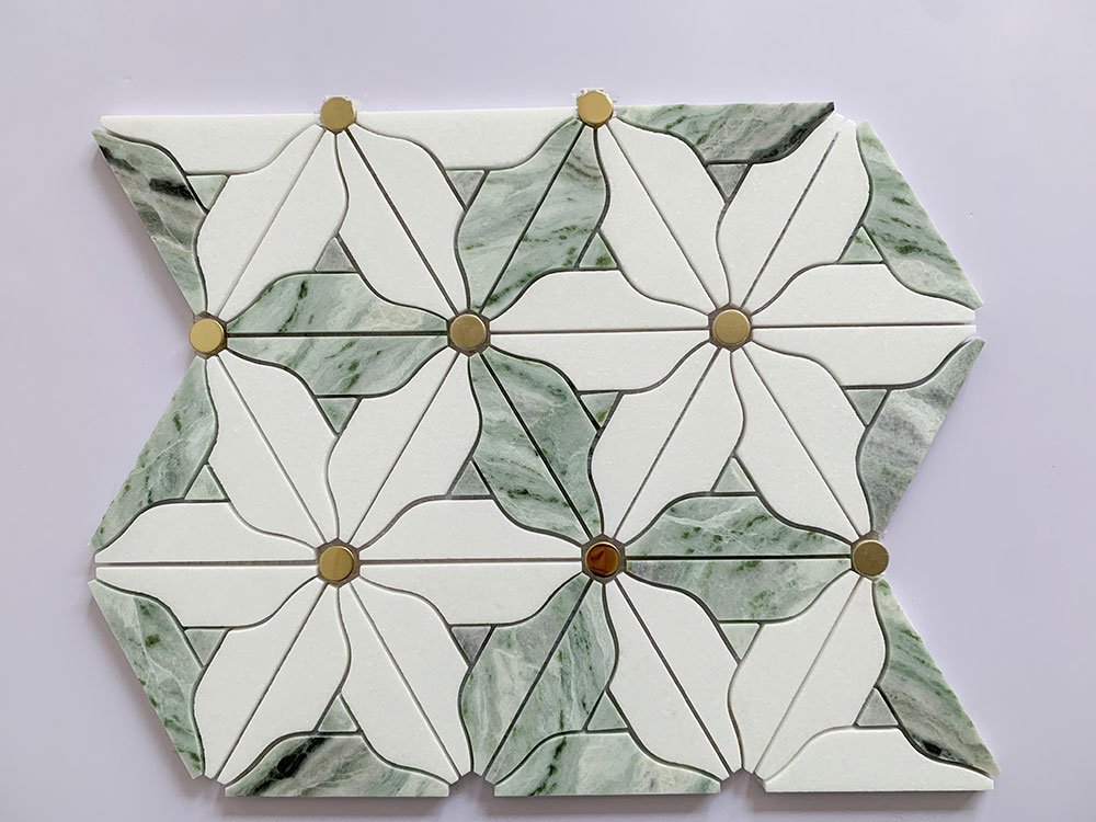 Lite Moss Flower Marble Mosaic Tiles β 300x300mm