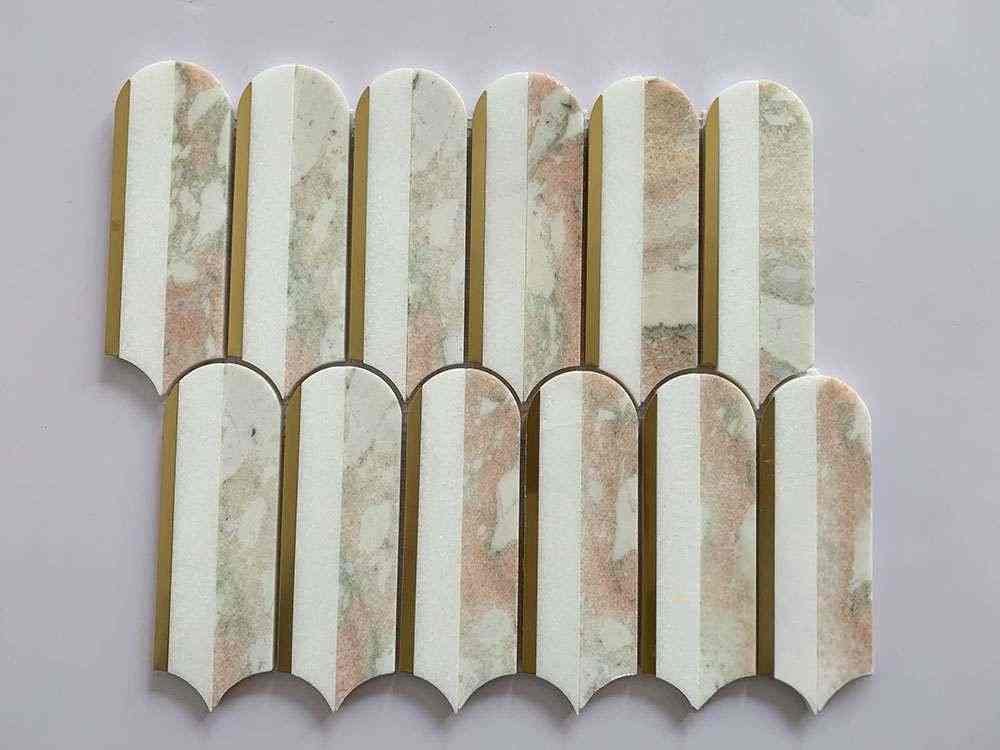 🧱 Product Name Mars Red Candle Shape Metal Mix Marble Mosaic Tiles
