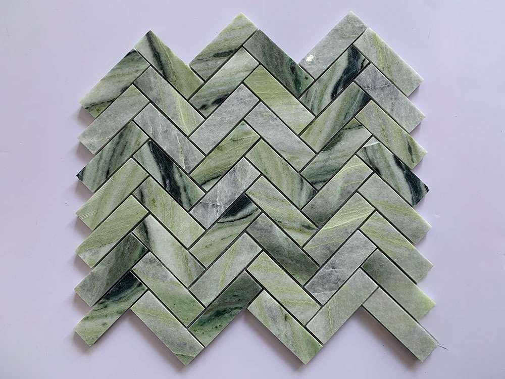 Moss Green Herringbone Marble Mosaic Tiles β 300x300mm