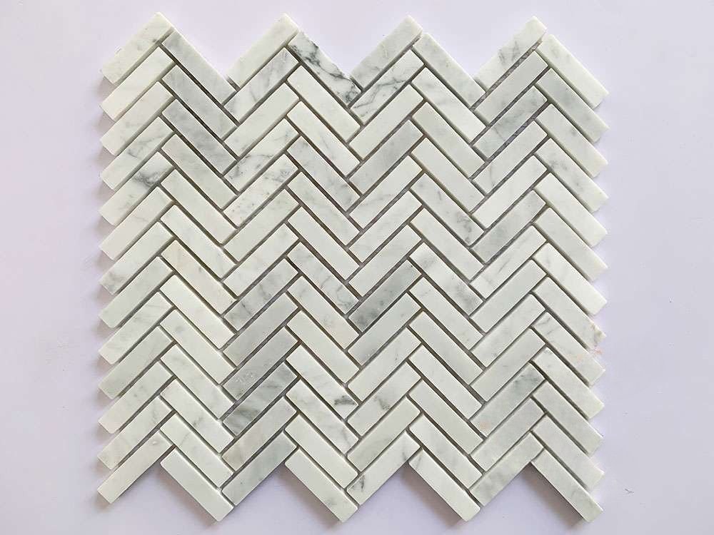 | π§± Product Name | Off-White and Grey Herringbone Marble Mosaic Tiles |