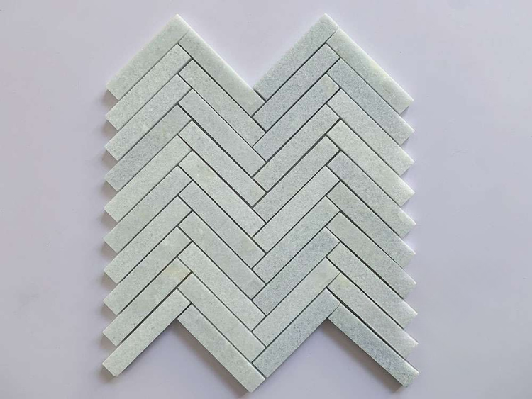 White and Grey Herringbone Marble Mosaic Tiles – 300x300mm