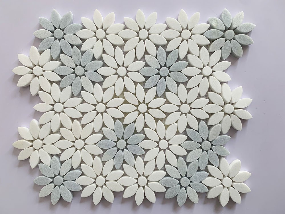 | π§± Product Name | White and Grey SunFlower Marble Mosaic Tiles |