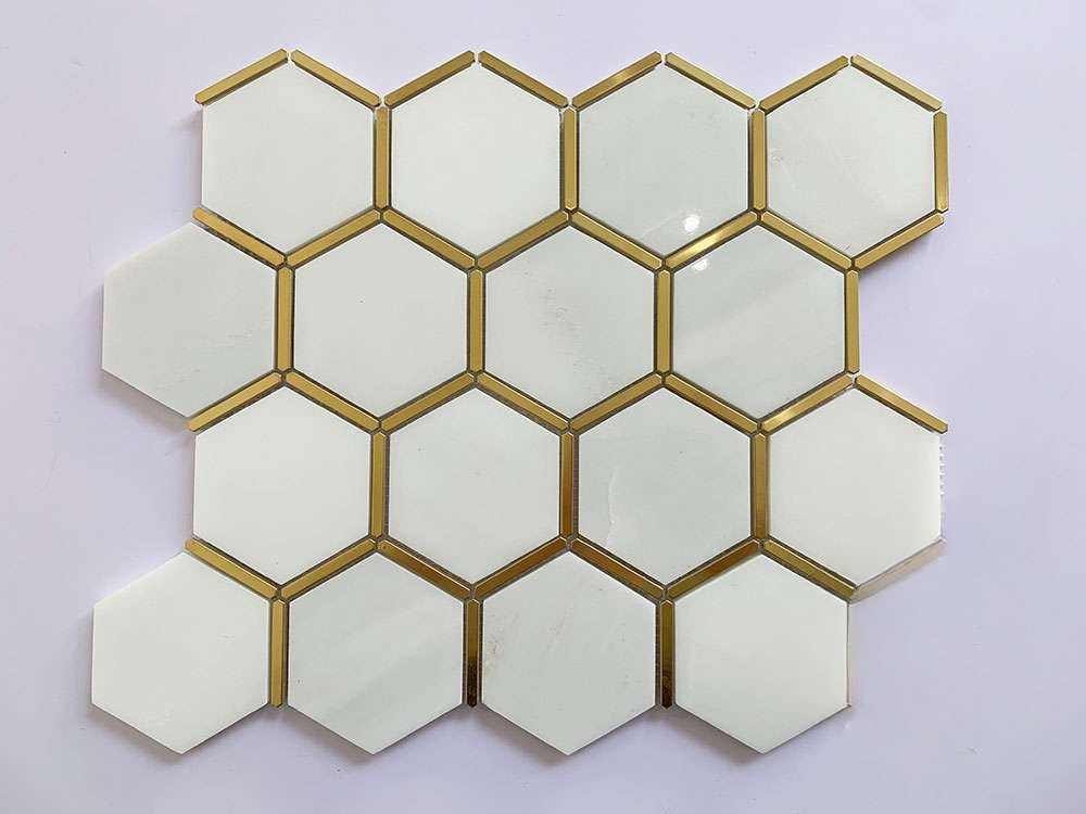 | π§± Product Name | White Hexagonal Metal Mix Marble Mosaic Tiles |