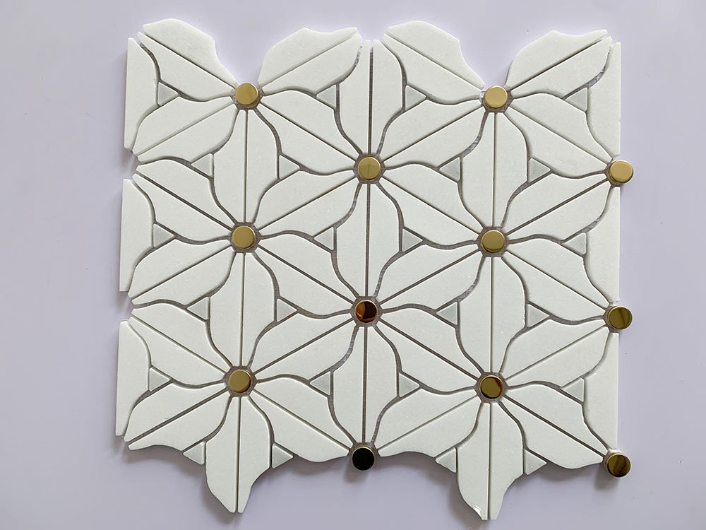 🧱 Product Name White Leaf Flower Marble Mosaic Tiles